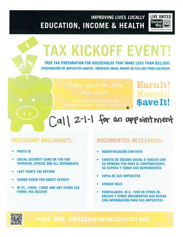 [Cwstudents] SRJC Free Tax Assistance