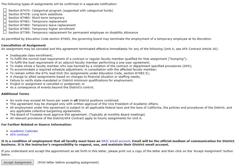 1. Review (and print if you choose) the letter below, then click accept in the lower left corner.