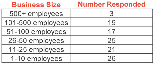 111 Sonoma County businesses representing 12,464 employees participated in the Winter 2016 Business Confidence Survey. These businesses represent a variety of industries and responded with their forecasts on business conditions and key concerns for future success. Here's how the businesses breakdown by size: