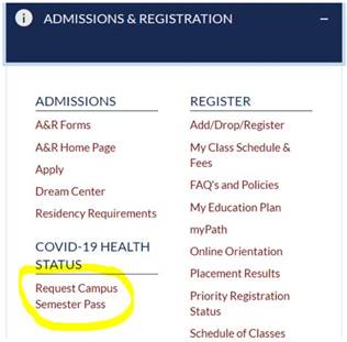 * Once they log in, they'll find a link under the "Admissions and Registration" menu to request a pass.